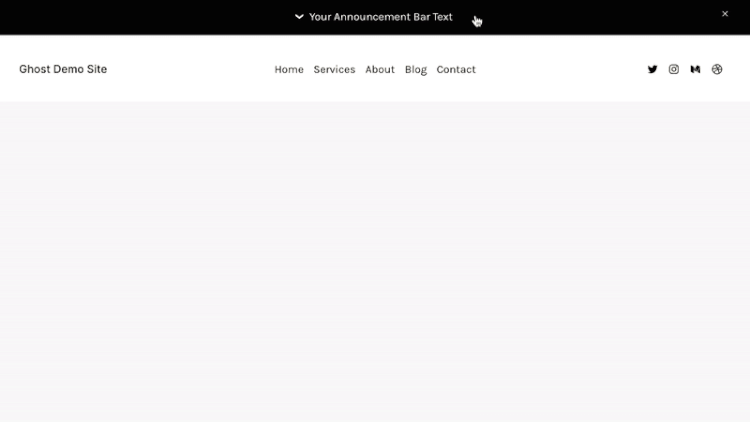 For $20.00 this new announcement bar style that drops down and displays a page section's content. It works with Squarespace 7.0 and 7.1, and you’ll need a Core/Business plan at least to allow for the code to be added. There are a few customisable options, so that you can swap out the colour within announcement bar styles, the image, text and button as you would edit on a normal page.