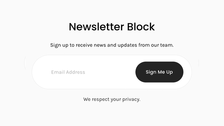 And a last freebie, the Newsletter Block - Super Pill Style. Even with all the options for styling forms and newsletter blocks, I still love the design of this Super Pill Style. It just looks cool. Period. Of course, you can customise the padding, colour, button, text etc, both within the CSS section and within Squarespace’s styling panel. Another way to add a unique touch to your site.